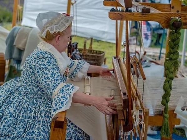18th century crafts will be on display in the Fiber Arts tent and in other camps around the venue. View demonstrations of flax and wool spinning, weaving, knitting, bobbin lace, shuttle knotting, and sewing done by the Daughters of Liberty who supported the effort for Independence. Pam Gassman highlights details of the many tools used in these crafts.